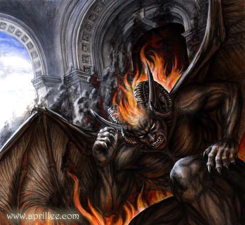 (Muad) *Voelt de woede gewoon van Arya's lichaam afstralen, en voegt daar zijn eigen woede aan toe* *De lucht tussen en rond Arya en Muad knettert van de gezamelijke woede* *De zwaarden van Arya en Muad nemen iets van elkaars gloed over, terwijl ze wel hoofdzakelijk hun eigen gloed behouden* Ik ga, Arya *Met een brul stort Muad zich met geheven zwaard op zijn vader, die vlot de eerste slag blokkeert met zijn bijl, terwijl zijn eigen staart de staart van Muad in bedwang houd* *Muad's vader brult triomfantelijk* "Laat het er maar uit, zoon. Laat die duivel los!" | |