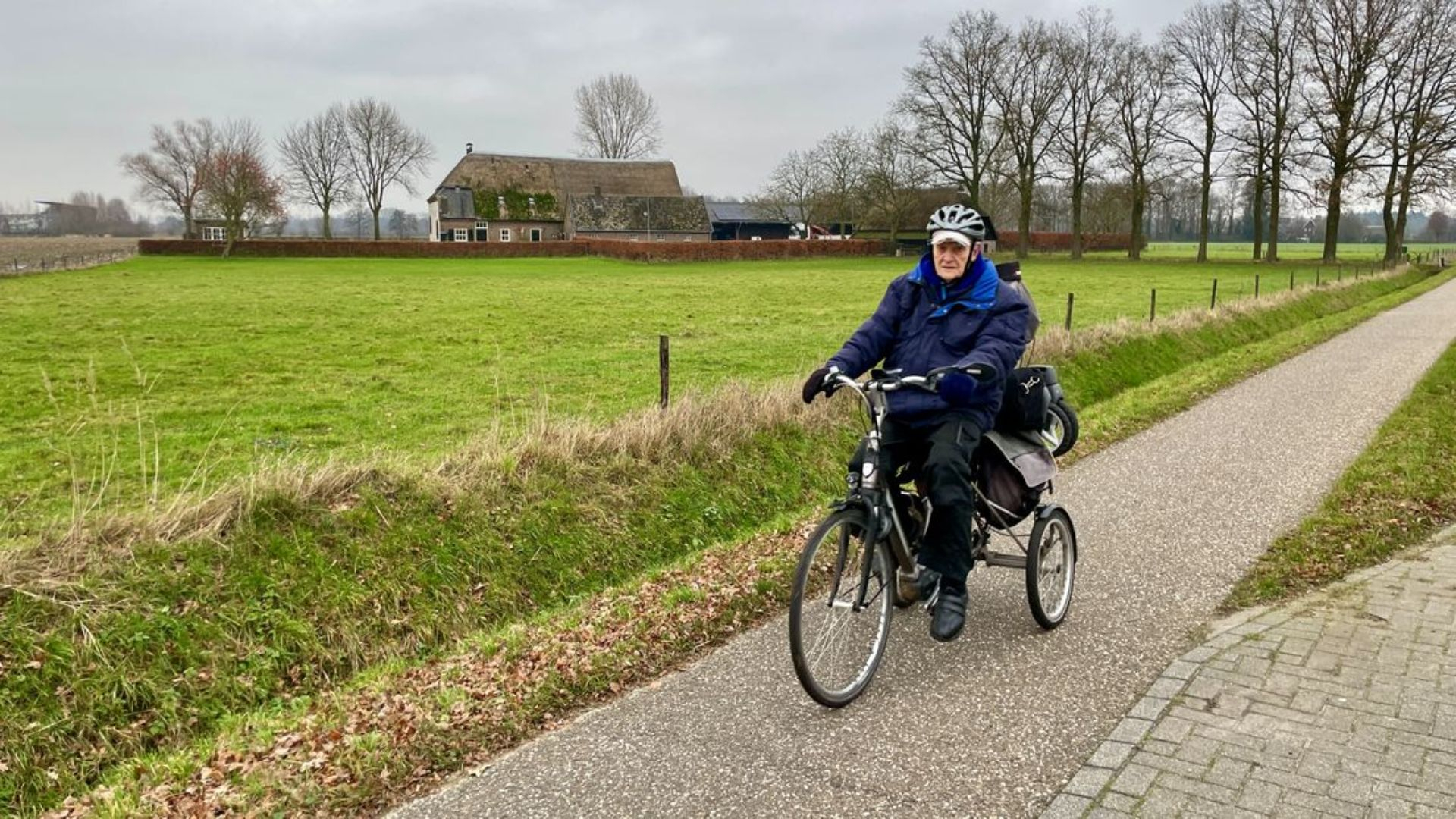 Wel is de fiets inmiddels aangepast naar een driewieler. Dit omdat Peter een tijd geleden onderuit is gegaan bij een rotonde. Door weer en wind fietst hij nu dagelijks op en neer. Behalve als het echt heel slecht weer is, dan neemt hij de taxi. “Ze kennen me allemaal bij PlusOV.”