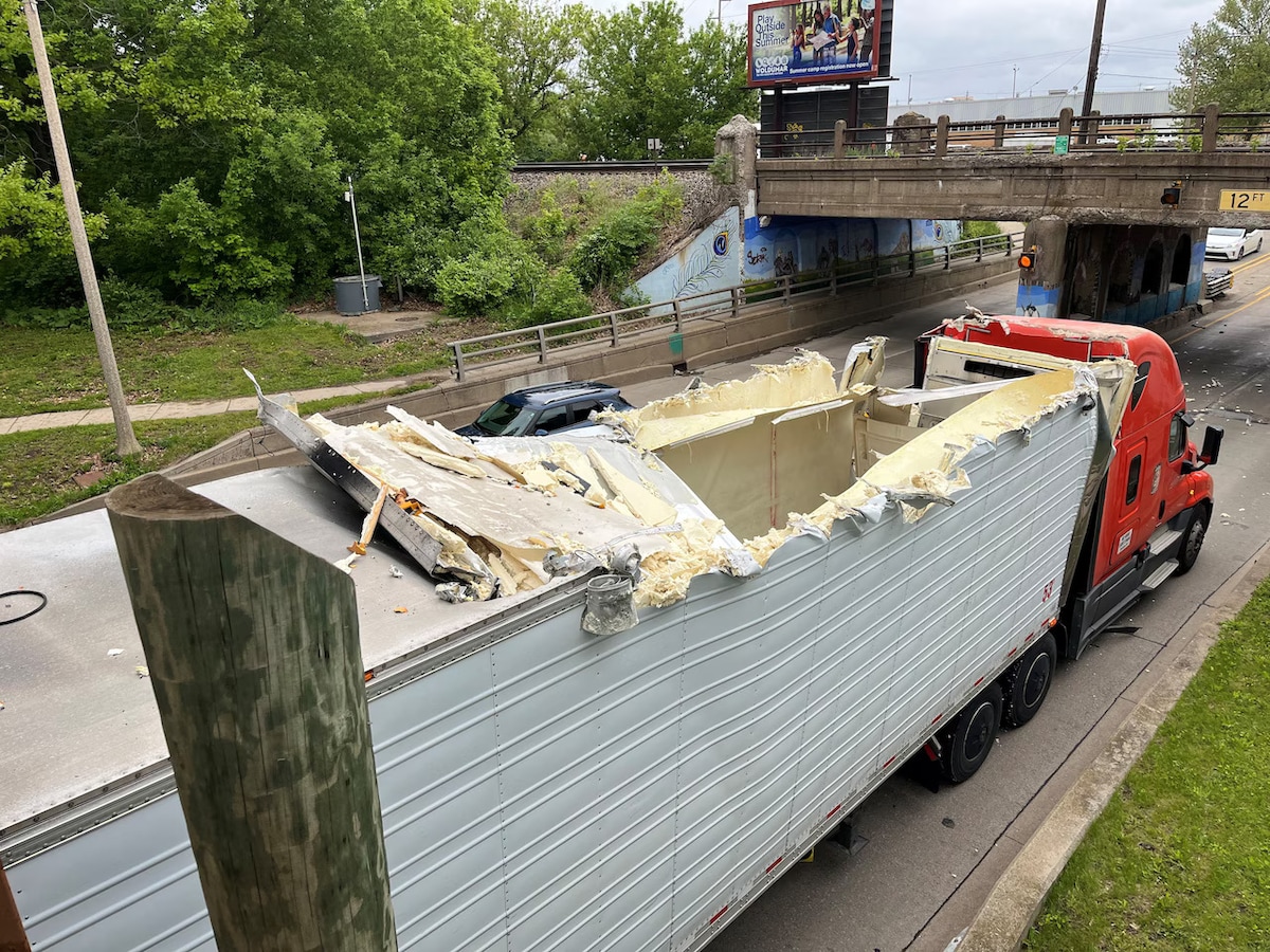 In de Amerikaanse stad Lansing (Michigan) werd dit weekend een opmerkelijk jubileum gevierd: de plaatselijke brug Big Penny had haar honderdste te hoge vrachtwagen in 21 jaar tijd verslonden.