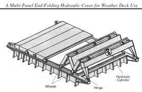 Quote @Mamsie: O ja, vraag! Wat is dat rode gevaarte op die tweede foto? Dat is een vouwluik (op alle foto's staan vouwluiken) dat recht omhoog staat. Hierdoor is het scheepsruim open. In dit geval staan er vier secties verticaal. Boven en onder zijn ze verbonden door scharnieren en worden met hydraulische plunjers op en neer gelaten. Ik vond geen maritieme voorbeelden, maar hier wordt het principe duidelijk. |