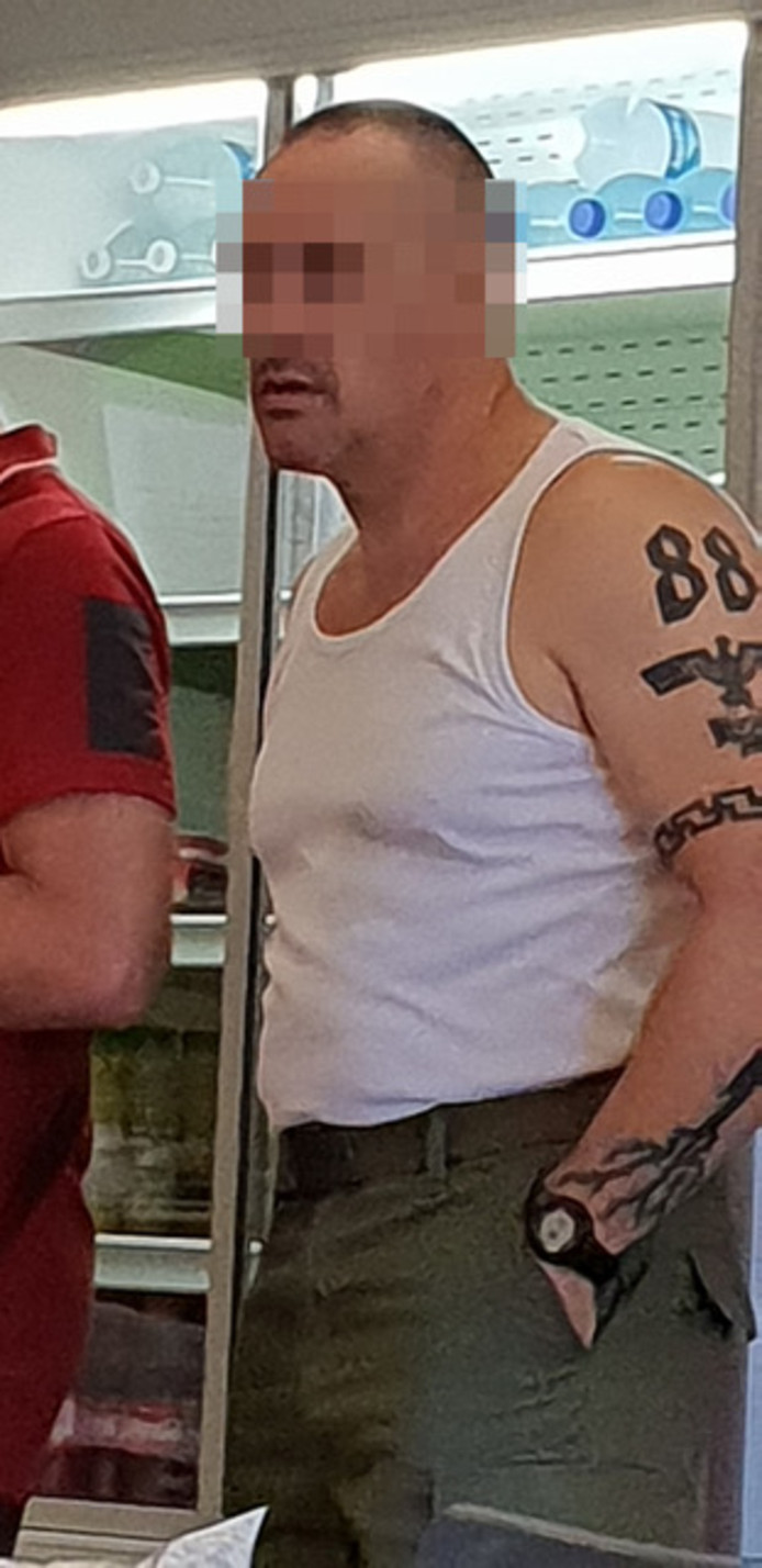 Op foto's die collega's maakten tijdens een personeelsfeest is te zien dat B. in dikke letters de cijfers '88' op zijn linkerbovenarm heeft staan. De afkorting staat voor 'Heil Hitler' (de H is de achtste letter van het alfabet). Onder de cijfers is ook nog een adelaar met gespreide vleugels te zien, symbool van het Derde Rijk.