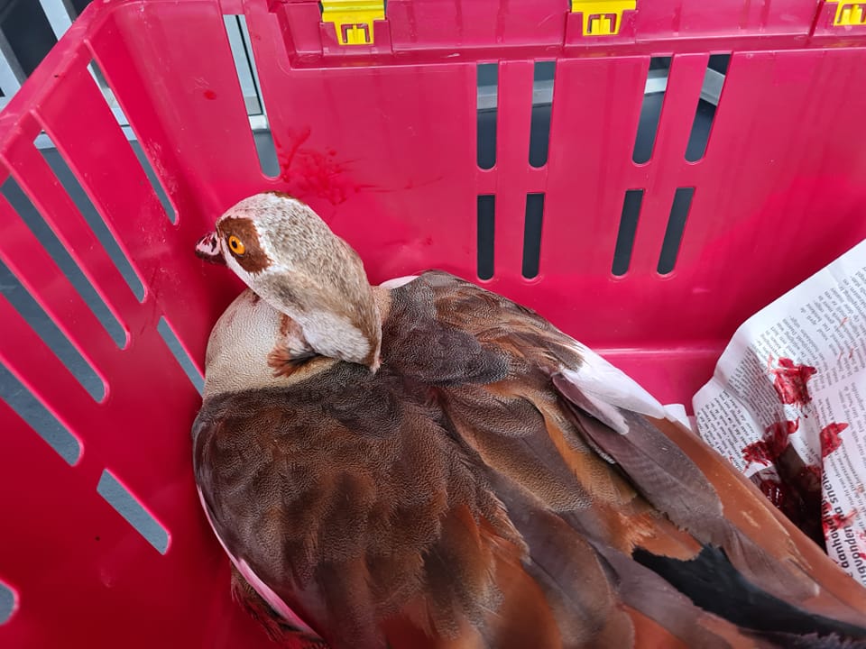 De gans bloedde flink, maar de schade viel mee, aldus dierenambulance Zwolle. "Het dier had alleen een scheurtje in zijn zwemvlies."
