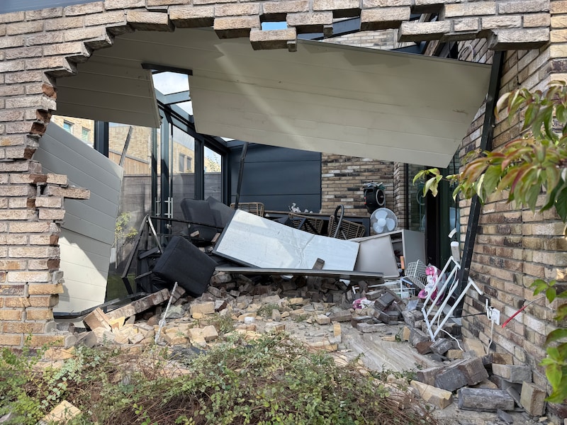 De schade is groot, maar de binnenwoning zelf is gespaard gebleven. De bestuurder van de auto raakte voor zover bekend niet gewond.