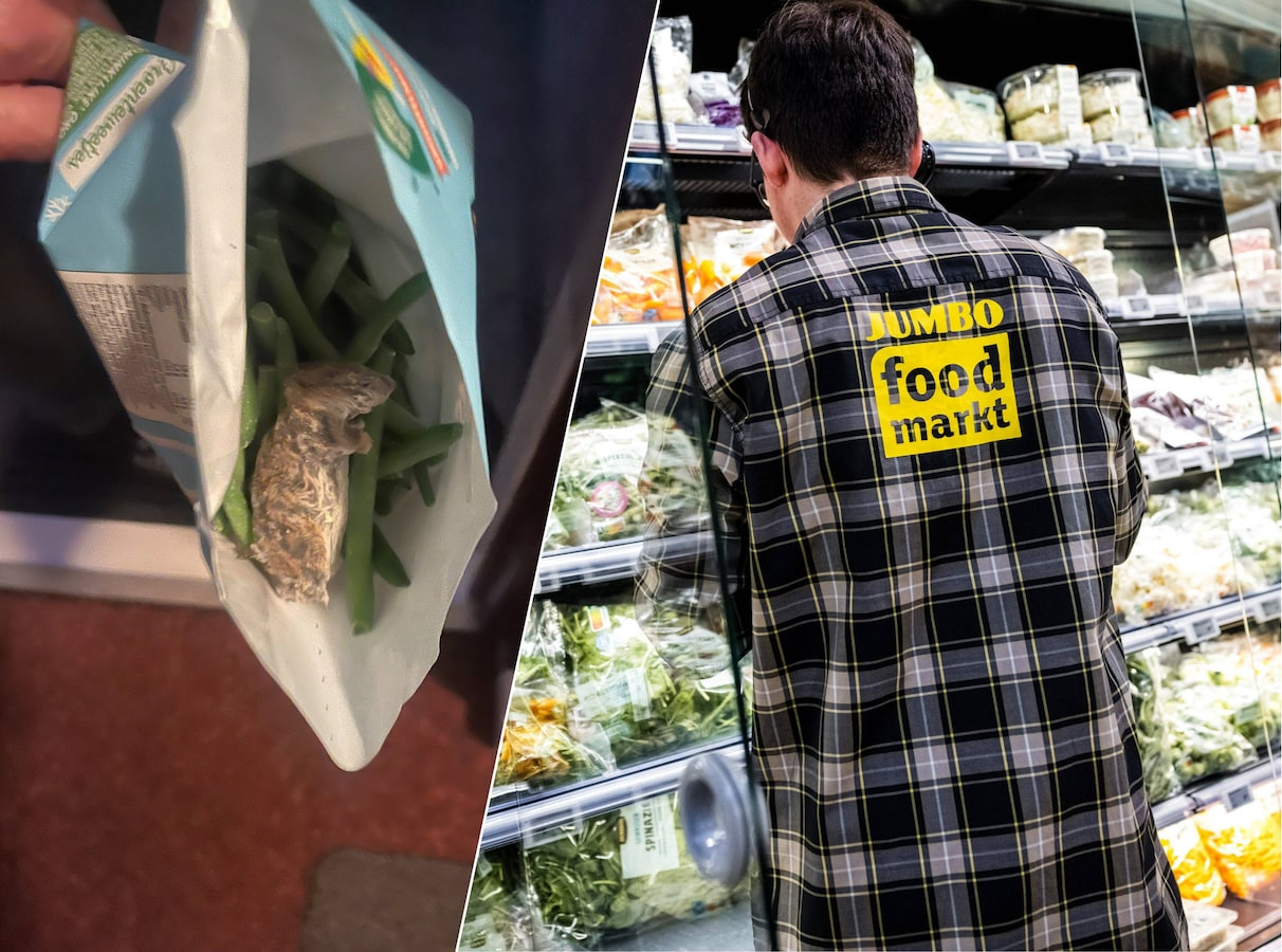 Een Rotterdams echtpaar is ‘hartstikke misselijk’ geworden toen het thuis een zak sperziebonen van Jumbo openmaakte. Er bleek een dode muis boven op de bevroren boontjes te liggen.